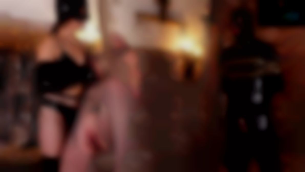 Sie wird von Domina gefesselt und gefummelt, während der Latex-Sklave zuschauen muss | Femdom | Lesbo | BDSM Menge